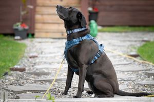 Très bon service. Le harnais fait très bien à mon gros chien Denver. Le harnais est très beau.